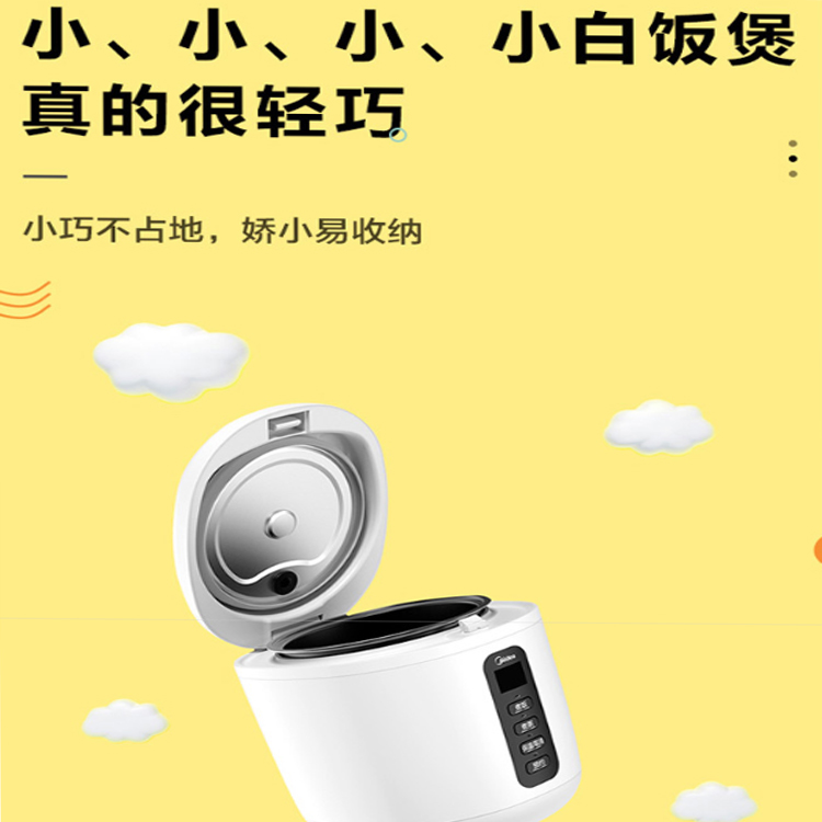 美的迷你電飯煲小巧不占地,嬌小易收納。