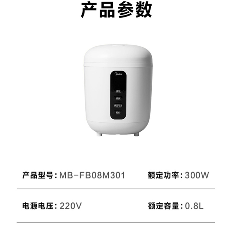 美的 (Midea)0.8L小容量迷你電飯煲便攜單人宿舍旅行MB-FB08M301