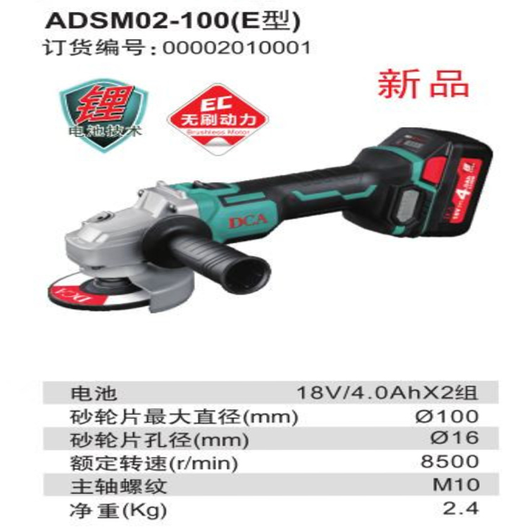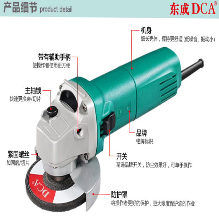 DCA充電式角向磨光機(jī)ADSM02-100(E型)自鎖開關(guān)設(shè)計(jì)輕松應(yīng)對(duì)長時(shí)間打磨工