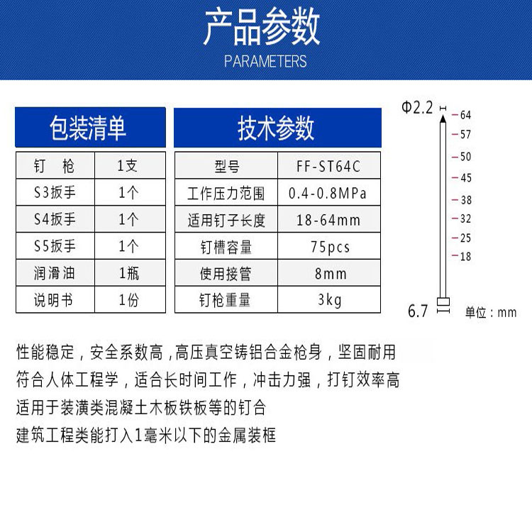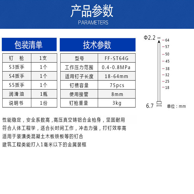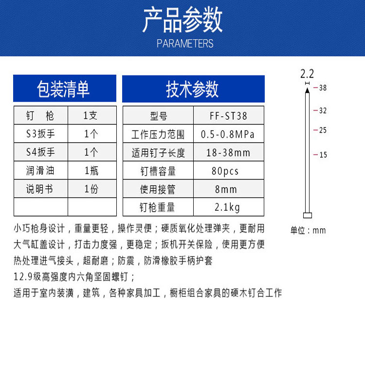 高強度機身,堅固耐用,打釘更強勁,裝修更方便。