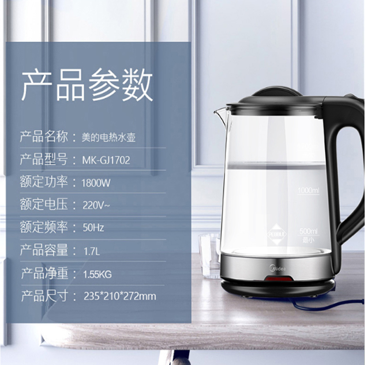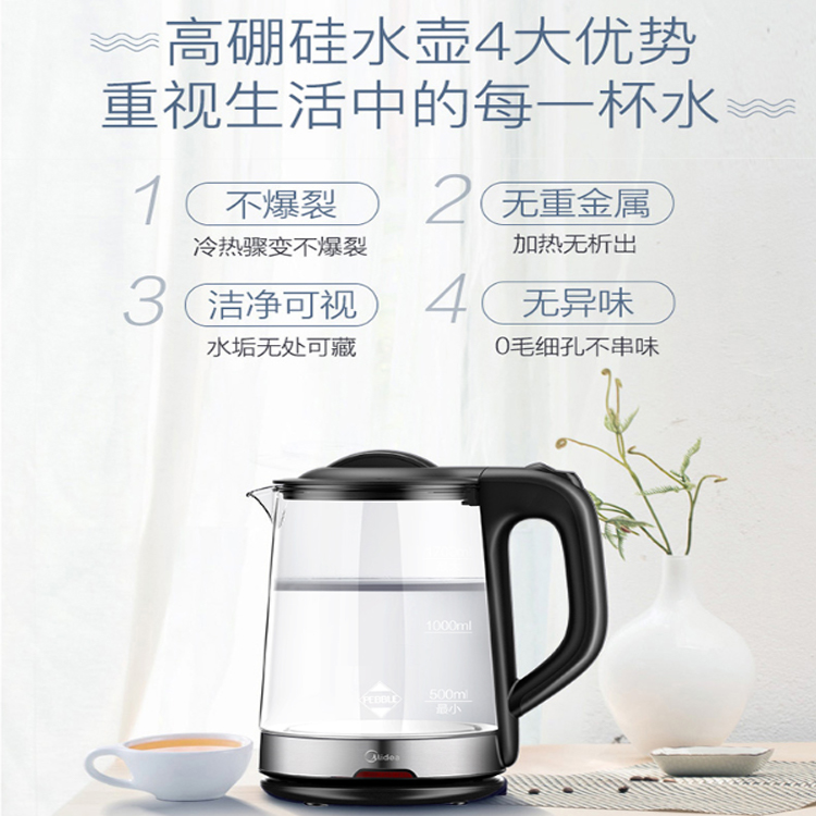 美的(Midea)電水壺嬰兒級高硼硅玻璃,性能卓能。