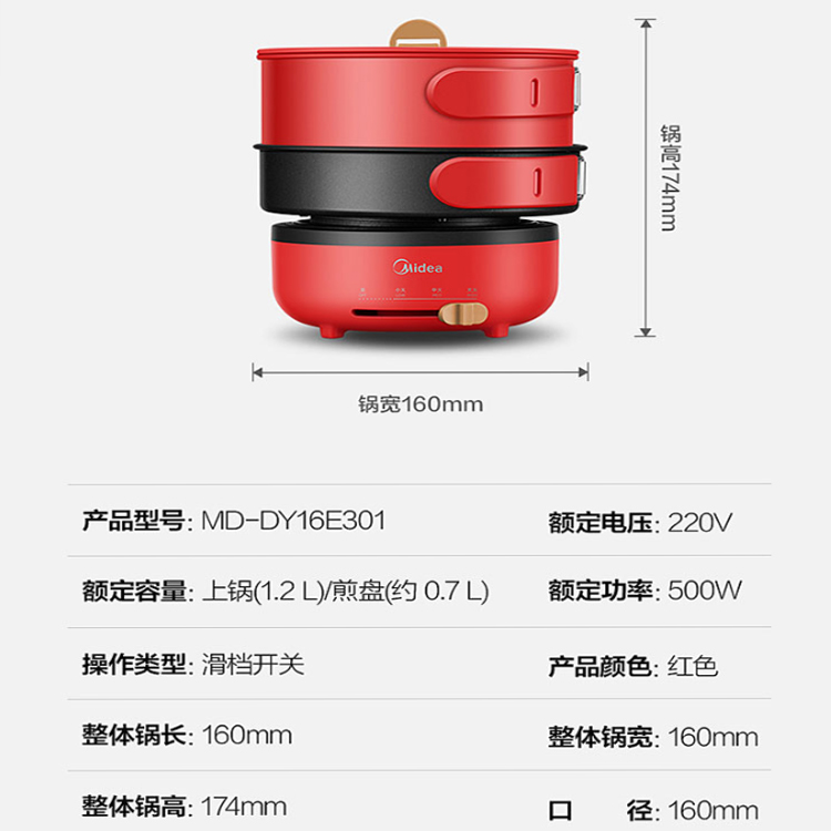 美的(Midea)多用途鍋深鍋煎盤組合設計,一鍋多用。