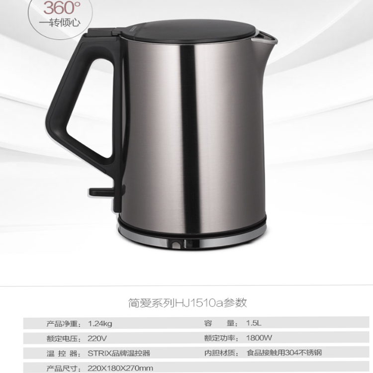 美的(Midea)電水壺采用上海寶鋼304不銹鋼,燒一壺健康水。
