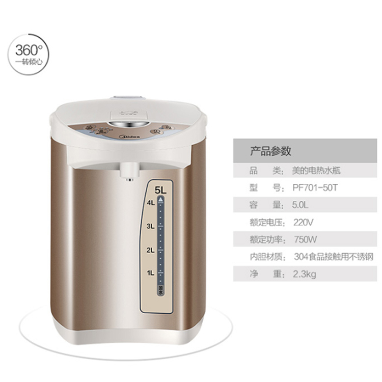 美的(Midea)電熱水瓶熱水壺電水壺304不銹鋼熱水瓶PF701-50T