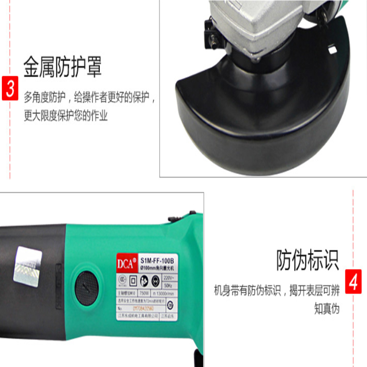 DCA角向磨光機S1M-FF-100B金屬防護罩高強度防護罩使用更加安全。