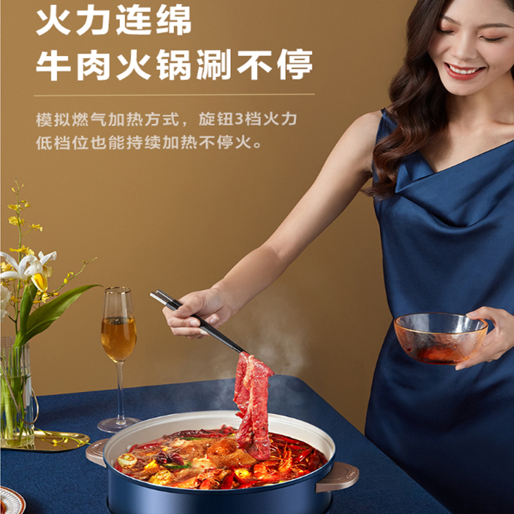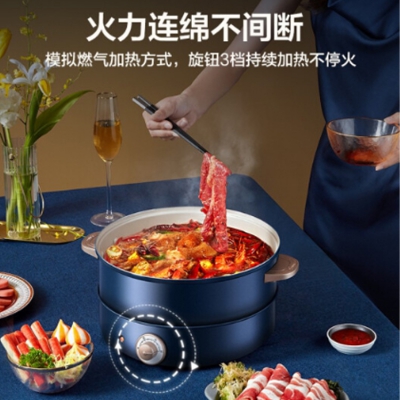 美的多功能電煮鍋旋鈕3檔火力,低檔位也能持續(xù)加熱。