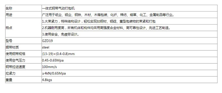 GZD19一體式鋼帶氣動(dòng)打包機(jī) 參數(shù)展示圖