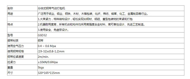 GSD32分體式鋼帶氣動打包機 參數展示圖