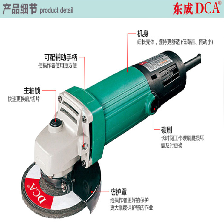 DCA角向磨光機S1M-FF10-100S金屬防護罩高強度防護罩使用更加安全。