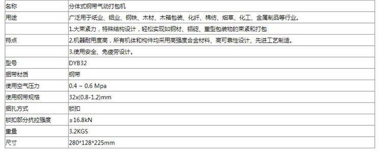 DYB32分體式鋼帶氣動打包機 參數展示圖