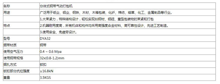 DYA32分體式鋼帶氣動打包機(jī) 參數(shù)展示圖