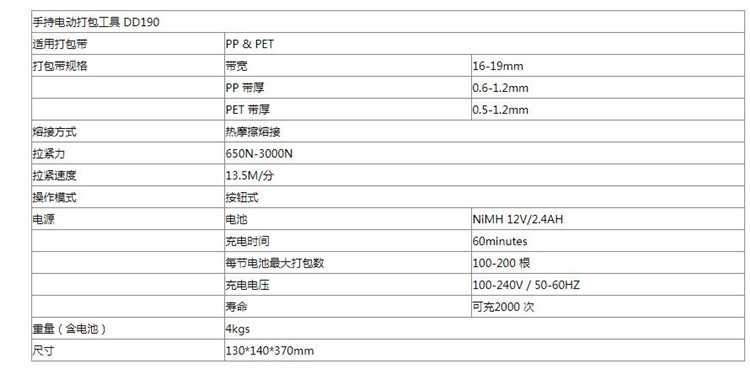 DD190電動打包機/手持電動打包工具 參數展示圖