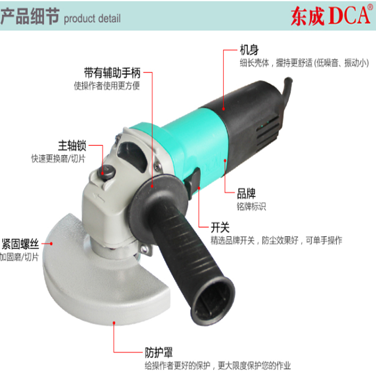 DCA角向磨光機(jī)S1M-FF-230A 金屬防護(hù)罩高強(qiáng)度防護(hù)罩使用更加安全。