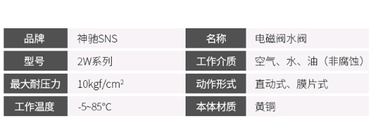 SNS神馳氣動電磁閥基本參數圖