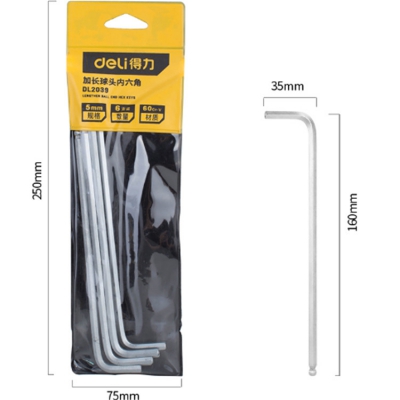 得力霧面S2加長球頭內(nèi)六角5mm多功能