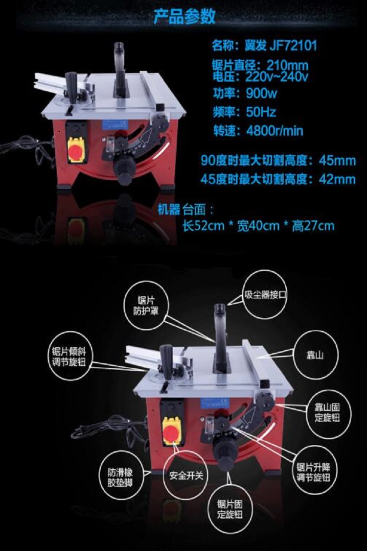 固定靠山 精準(zhǔn)標(biāo)尺 鋸片切斜調(diào)節(jié)按鈕