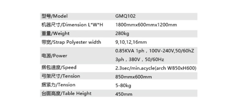 GM-PACK光明牌紙箱打包機(jī)低臺(tái)全自動(dòng)無人化打包機(jī)/捆扎機(jī) 參數(shù)展示圖