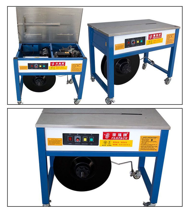 打包機主要用于商業、郵政、鐵路、銀行、食品、醫藥、書刊發行等行業的紙箱、紙包件、柳編箱、布包件的包裝捆扎。