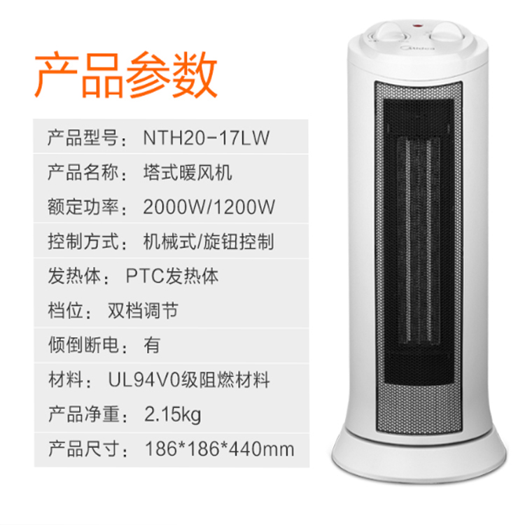 美的(Midea)暖風機增大熱交換面積,熱效高。