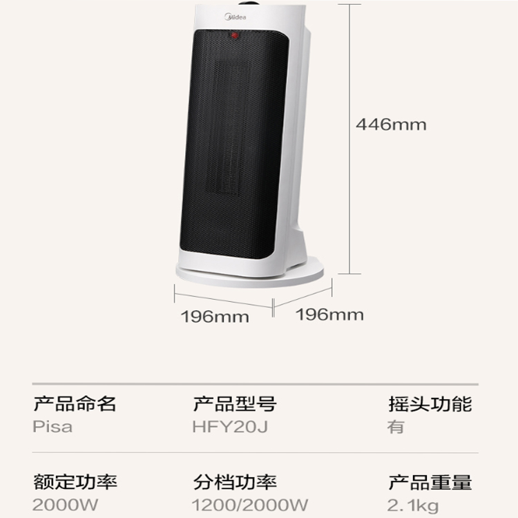 美的(Midea)暖風機仰角7°出風,溫暖從腳到全身。