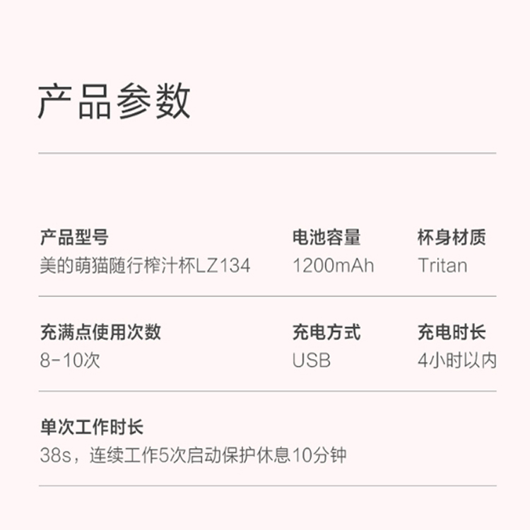 美的 (Midea)便攜榨汁機隨時鮮果飲,電量時刻在線。