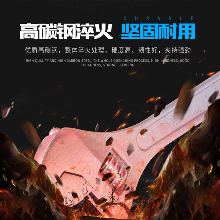 東成活動(dòng)扳手高碳鋼淬火,硬度高,韌性好,夾持強(qiáng)勁。