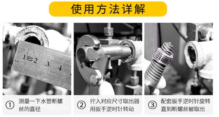 螺絲拆除器旋轉(zhuǎn)取出器折斷螺栓時嚴(yán)禁用力過猛 以防取出器被折斷