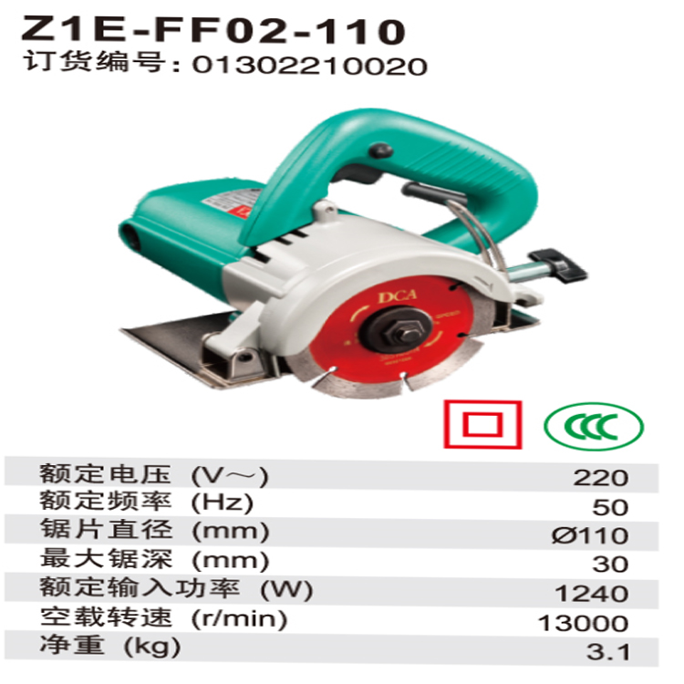 DCA云石機Z1E-FF02-110可對各種類型的石料進行機械切割加工,