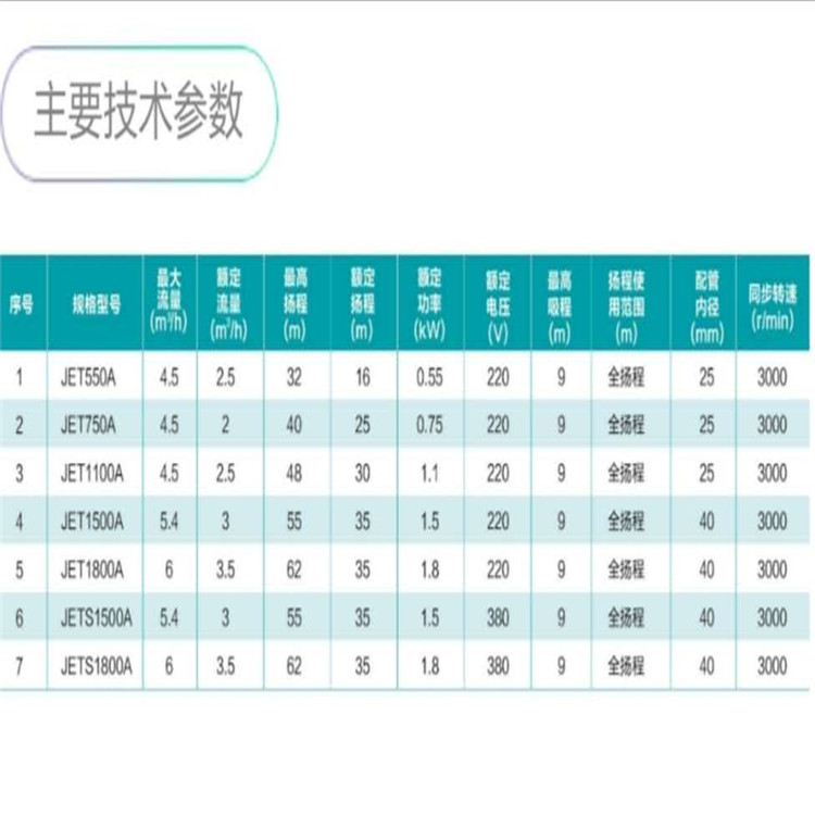 新界噴射式電泵參數(shù)圖