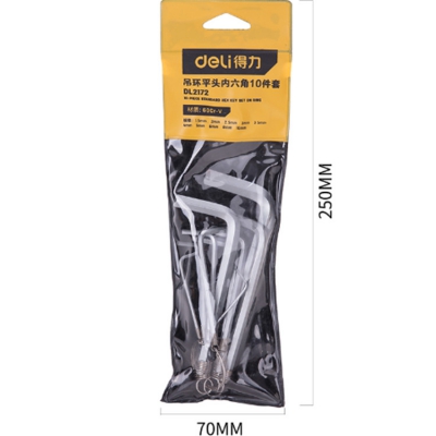 得力吊環平頭內六角10件套長型球頭內六角螺絲刀家用多規格