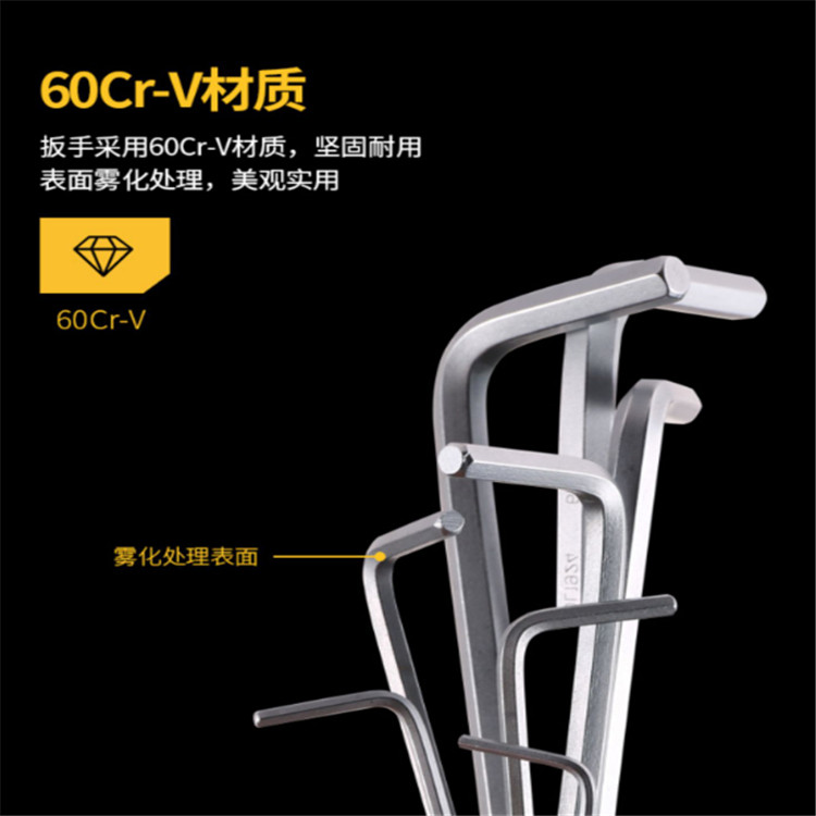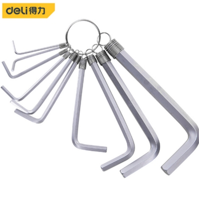 得力吊環平頭內六角10件套采用優質鉻釩鋼制造,整體熱處理,硬度可達52-56HRC。