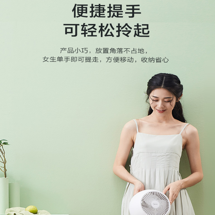 美的(Midea)智能小風扇帶有便捷提手,可輕松拎起。