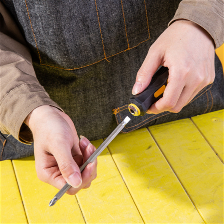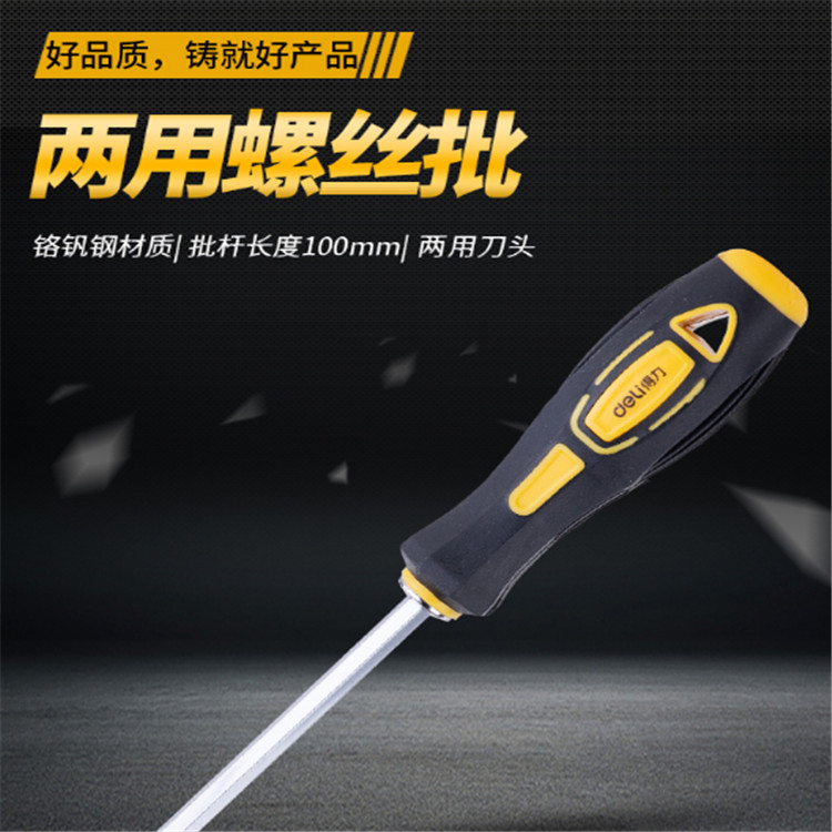 得力兩用螺絲批刀桿為鉻釩鋼整體淬火而成,硬度高,韌性好,更耐用。