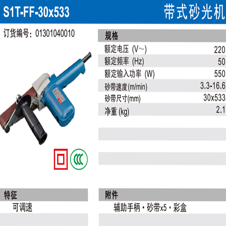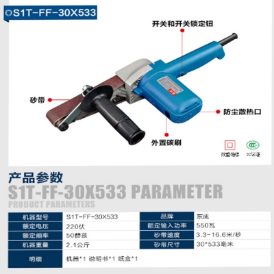 東成帶式砂光機S1T-FF-30x533用于木工打磨拋光作業,光滑平整機身輕巧,握持