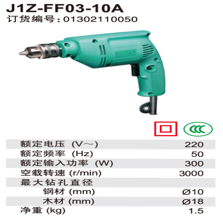 DCA手電鉆J1Z-FF03-10A適用于對混凝土地板、墻壁、磚塊,