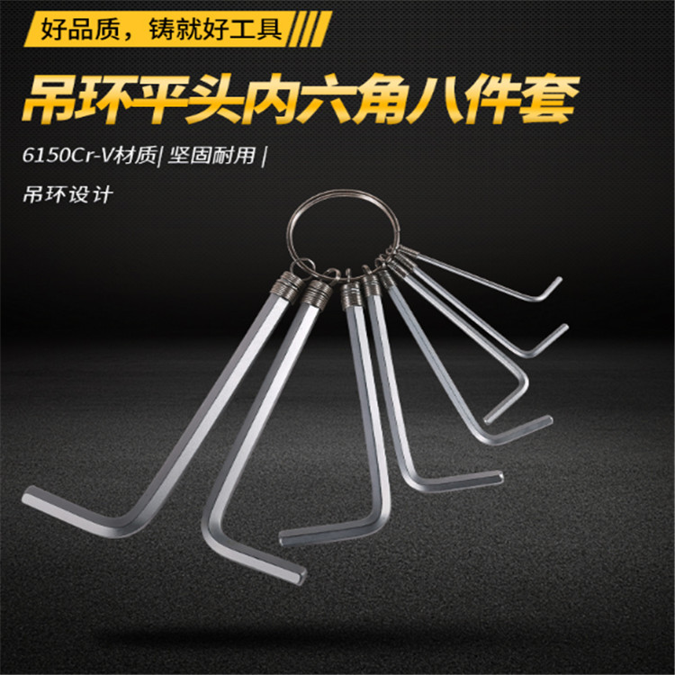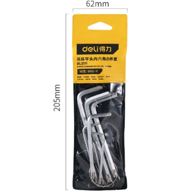 得力 吊環平頭內六角8件套鉻釩鋼內六角螺絲扳手