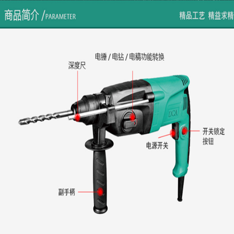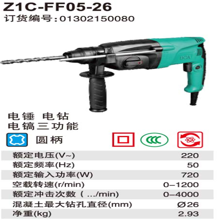 DCA電錘Z1C-FF05-26主要用來在混凝土、樓板、磚墻和石材上鉆孔。
