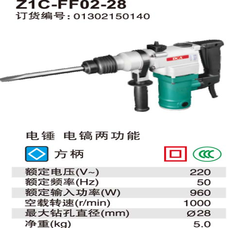 DCA電錘Z1C-FF02-28主要用來在混凝土、樓板、磚墻和石材上鉆孔。