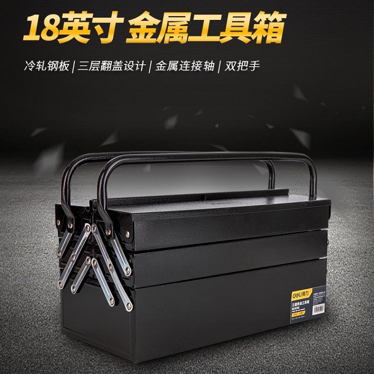 得力鐵盒工具箱五金工具盒鐵箱車載金屬收納盒三層倉儲(chǔ)盒子DL6232