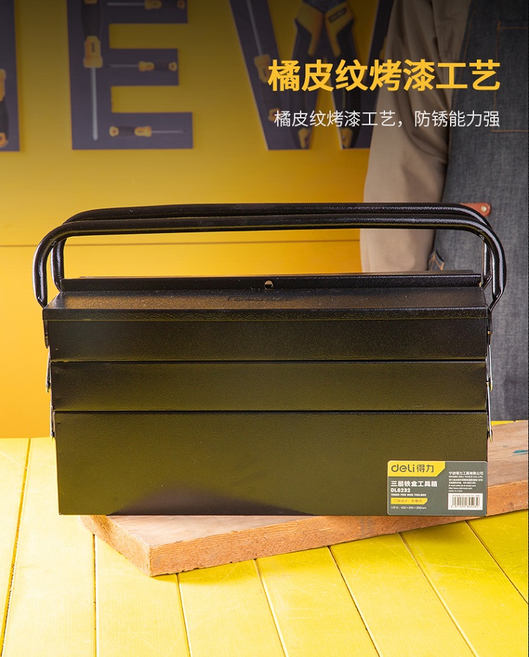 三層鐵盒工具箱橘皮紋烤漆工藝,防銹能力強(qiáng)