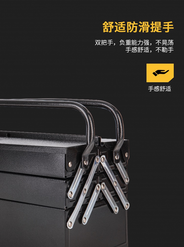 工具箱雙把手設(shè)計(jì),負(fù)重能力強(qiáng),不晃蕩,手感舒適,不勒手