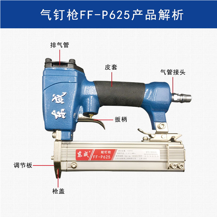 直釘槍產品解析:排氣管、調節板、槍蓋、板柄皮套、氣管接頭