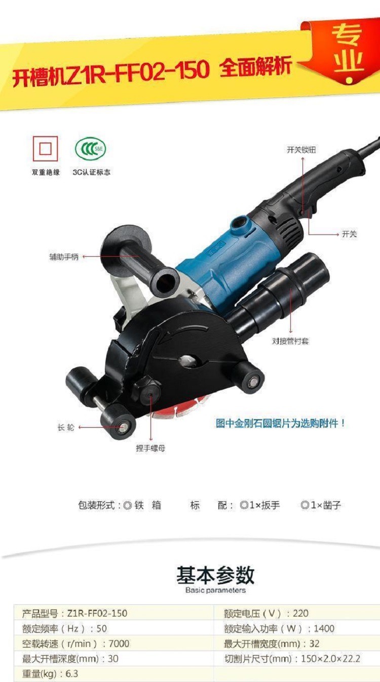 東成Z1R-FF02-150開槽機切割機多功能無塵墻壁馬路水電雙片云石機基本參數