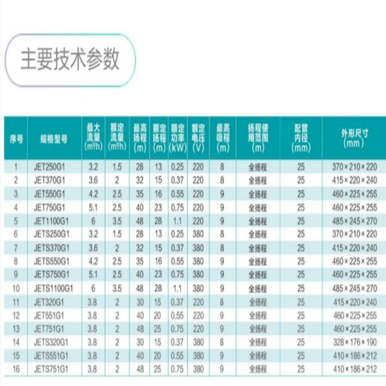 新界不銹鋼噴射式電泵參數圖