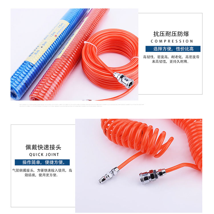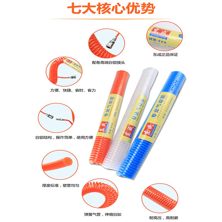 東成氣管風(fēng)管氣動(dòng)軟管TPU材料彈簧管高壓氣管軟管,