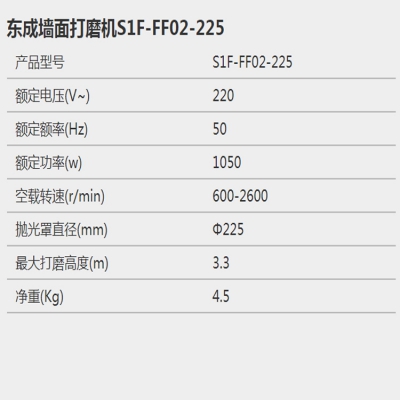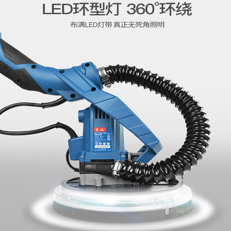 東成墻面打磨機S1F-FF02-225墻面打磨機墻面磨光機可調速自吸式LED燈