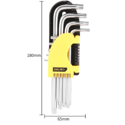得力長型中孔花型內六角9件套表面霧化處理,有效防止反光。
