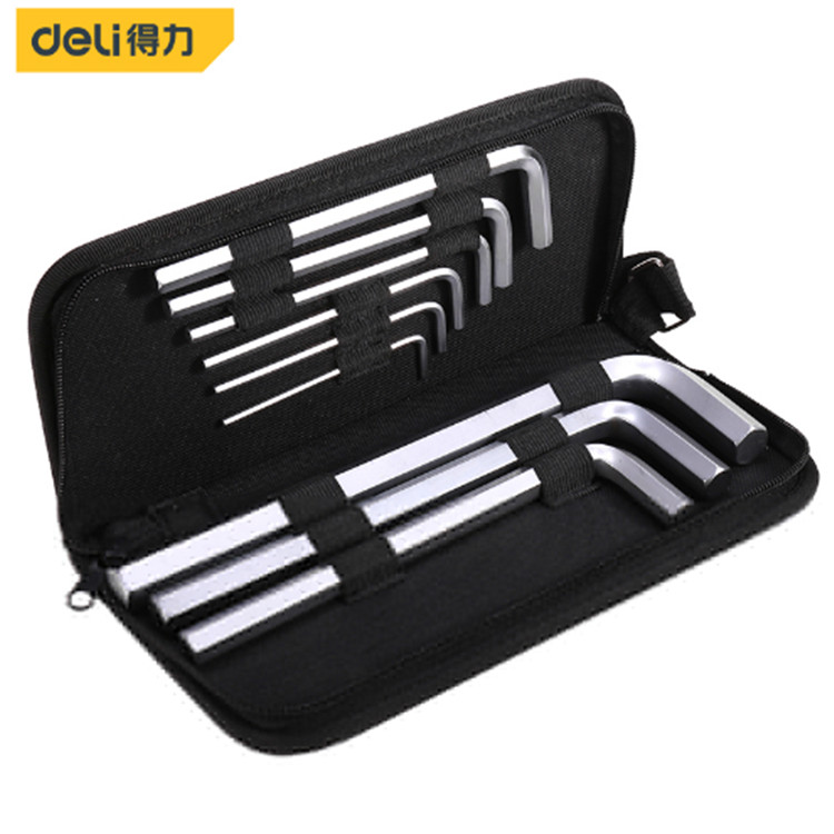 得力 布包長型平頭內(nèi)六角9件套采用優(yōu)質(zhì)鉻釩鋼制造,整體熱處理,硬度可達(dá)45-56HRC。