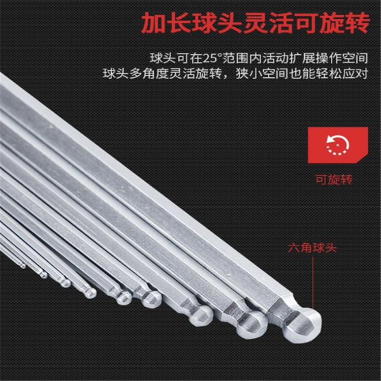 得力 S2長(zhǎng)型球頭內(nèi)六角扳手頭部球頭設(shè)計(jì),可傾斜25°使用,有效避空。