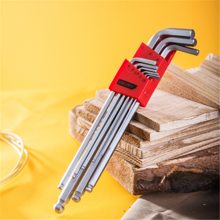 得力 S2長(zhǎng)型球頭內(nèi)六角扳手表面砂丁鎳處理,有效防止反光。